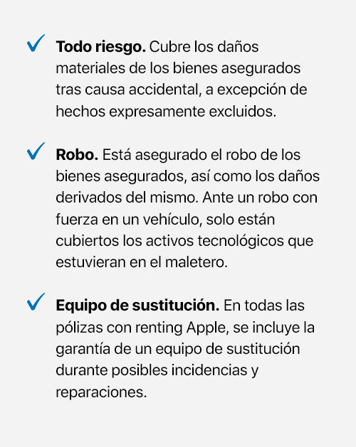 Sí, es necesario contratar el servicio de Protección Multirriesgo Iberent para que la cobertura sea total. Todos los productos Apple deben estar asegurados en aplicación de las condiciones generales del contrato de arrendamiento.