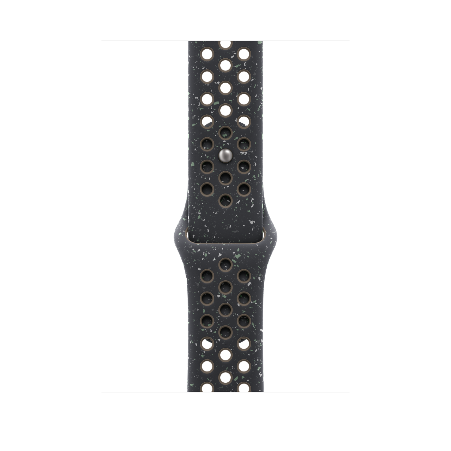 La correa Nike Sport es resistente y suave a la vez. Además, es transpirable gracias a sus perforaciones hechas por compresión. Incluye fragmentos de distintos colores que se combinan de forma aleatoria para crear un diseño jaspeado único. Este material es flexible, agradable al tacto y se adapta con elegancia a tu muñeca. Su nuevo cierre de clip de aluminio da al pasador un elegante acabado mate. La correa contiene al menos un 30 % de fluoroelastómero reciclado y las motas del jaspeado, al menos un 66 %.