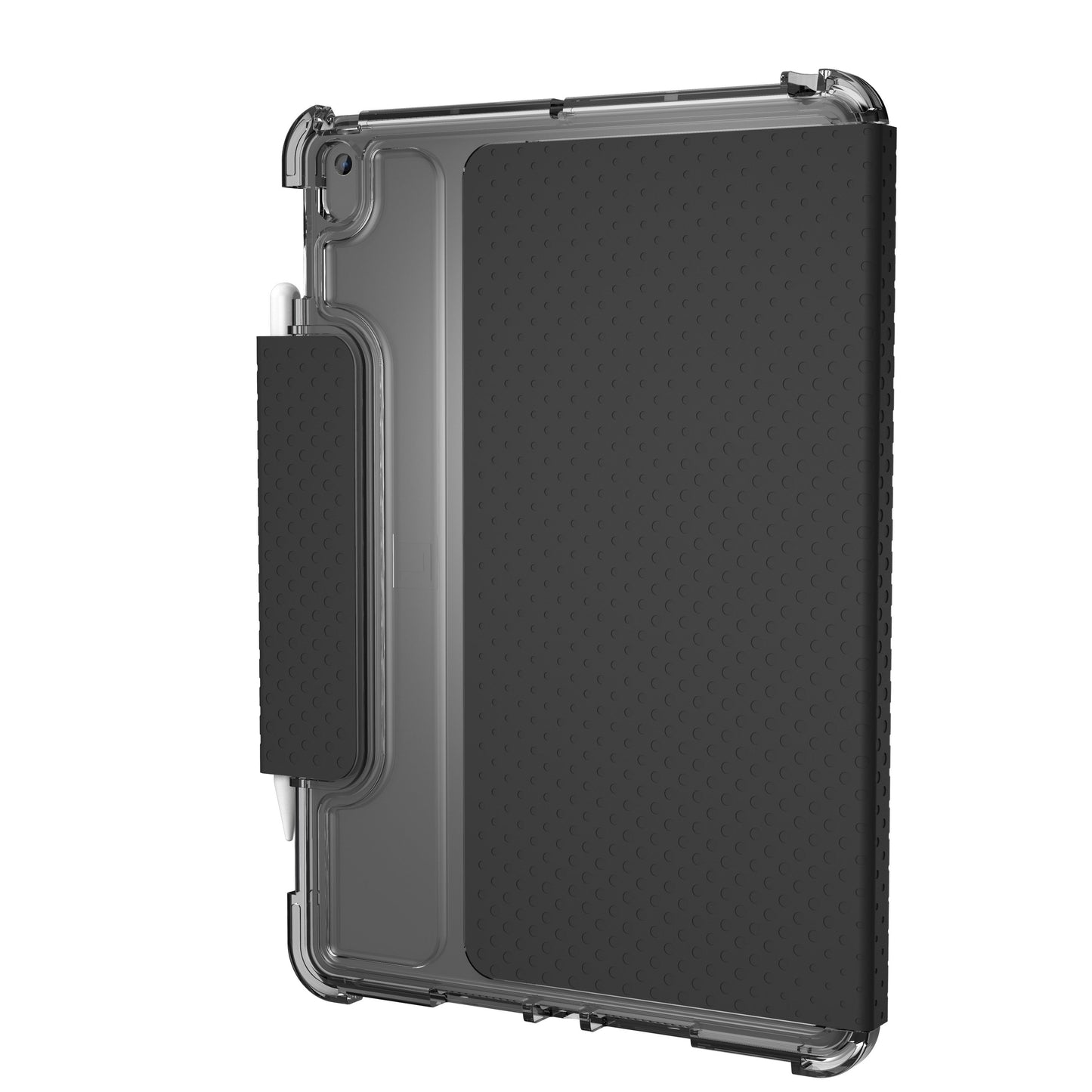 La funda Lucent para iPad. Elegante y sofisticada, con un cuerpo translúcido y una cubierta/soporte folio con patrón de puntos en contraste. Imprescindible para trabajar en casa, en la oficina o en los desplazamientos. La funda Lucent es fuerte y bonita, con un diseño ligero como una pluma resistente a los impactos, que deja su iPad totalmente protegido e impresionante.