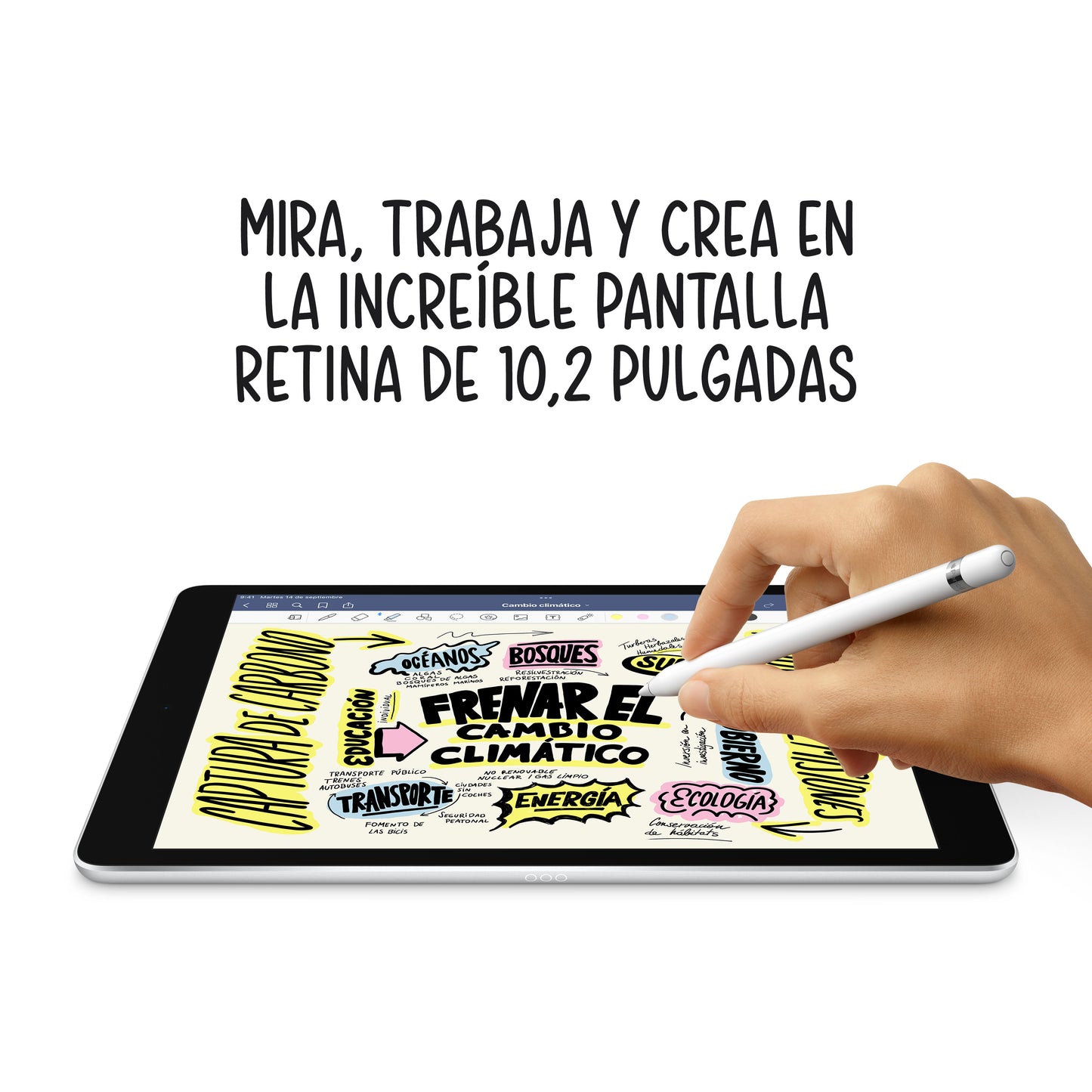 Potente, versátil y muy sencillo de usar. El nuevo iPad tiene una fabulosa pantalla Retina de 10,2 pulgadas, el potente chip A13 Bionic y ultra gran angular frontal con Encuadre Centrado.