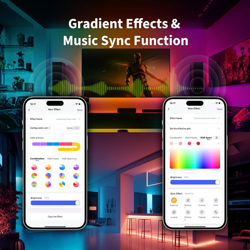 Segmentación RGBIC: controla hasta 10 segmentos de la tira de forma independiente.